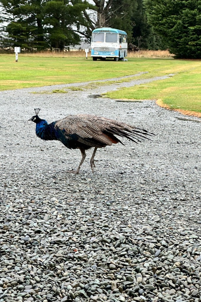Es hat uns viel Zeit, Kraft und Nerven sowie zwei platte Reifen gekostet, sodass wir froh waren, als sich endlich die Chance ergab, durch einen kleinen Umweg wieder auf einen Highway zu wechseln und das letzte Stück wieder auf festem Boden hinter uns zu bringen. Der Rückenwind wehte uns im Nu nach Mossburn, wo auf dem Campingplatz Pfaue frei herumstolzieren und wir in der Abendsonne die Alpacas füttern konnten.