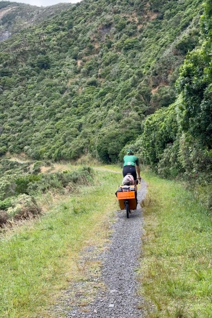 Für Radfahrer gibt es eine wesentlich schönere und angenehmere Alternative zum verkehrsreichen Pass, den Remutaka Rail Trail. Wo früher die Eisenbahn von Wellington nach Nordosten das Gebirge überquerte, verläuft heute der Radweg. Da wegen des unwegsamen und steilen Geländes nur extrem aufwendig und mit Speziallokomotiven befahrbar, hat man irgendwann die Bahntrasse in einen Basistunnel verlegt und die alte Strecke aufgegeben. Die ist zwar mit 7 % für eine Bahntrasse extrem steil, auf dem Fahrrad aber gut machbar und schön gleichmäßig. Zudem ist die Aussicht phanstastisch, man kommt durch einige alte Eisenbahntunnels und muss eine lange Hängebrücke überqueren (die ursprüngliche Bahnbrücke wurde offenbar abgebaut).