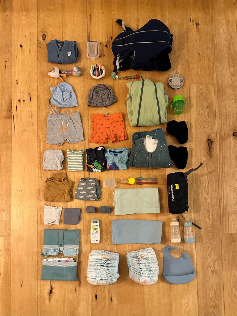 Reisen mit absolutem Minimalgepäck relativiert sich ohnehin durch das Baby. Es muss sichergestellt sein, dass immer zum Wetter passende und trockene Kleidung für Karl vorhanden ist. Auf manche spezifische Extraausrüstung wie die Babytrage lässt sich kaum verzichten und nur von Kraftriegeln und Tankstellennahrung zu leben kommt für den kleinen Mann auch nicht infrage, weshalb Gaskocher und Kochgeschirr ebenfalls nicht zu Hause bleiben können. Windeln reichen zwar 2-3 pro Tag aus, man kauft sie aber in Packungen von 30 Stück und bekommt auch nicht täglich die Möglichkeit dazu.