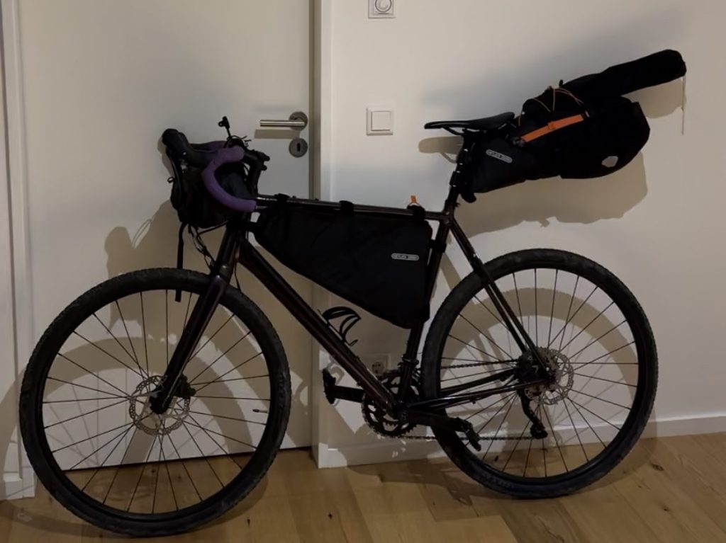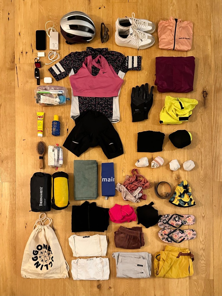 Mandys Kleidung, Radausrüstung sowie natürlich Schlafsack und Matte. Auch Karls Gepäck ist größtenteils an Mandys Rad verstaut.