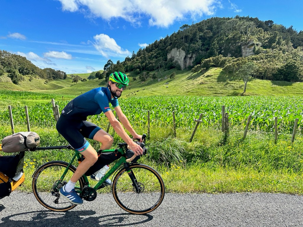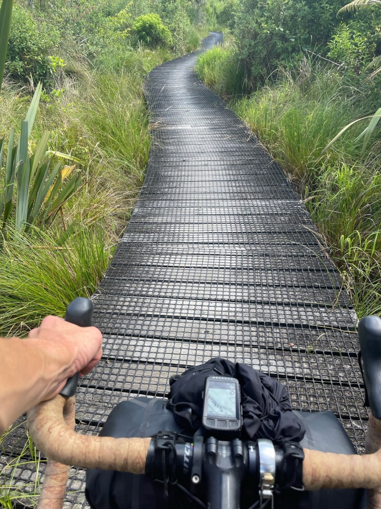 Nach drei Tagen Pause und einem zwar verregneten, aber sehr schönen Weihnachtsfest in Rotorua, wo Lukas vor vielen Jahren als Austauschschüler zur High School gegangen ist, haben wir uns am zweiten Weihnachtstag wieder am gleichen Ort absetzen lassen, wo unsere Räder noch auf uns warteten. Von dort aus ging es erstmal gute zwanzig relativ unspektakuläre Kilometer durch die Hügel, bevor wir an den Waikato River gelangten. An diesem führt über viele viele Kilometer ein Mountainbiketrail entlang, auf dem wir das letzte Stück des Tages fuhren. Von der schönen Natur hier konnten wir nicht ganz so viel aufnehmen, weil der Trail schmal ist und wir uns mit Gepäck und Trailer erstmal an diese Art des Fahrens auf losem Untergrund gewöhnen und ein bisschen Technik üben mussten.